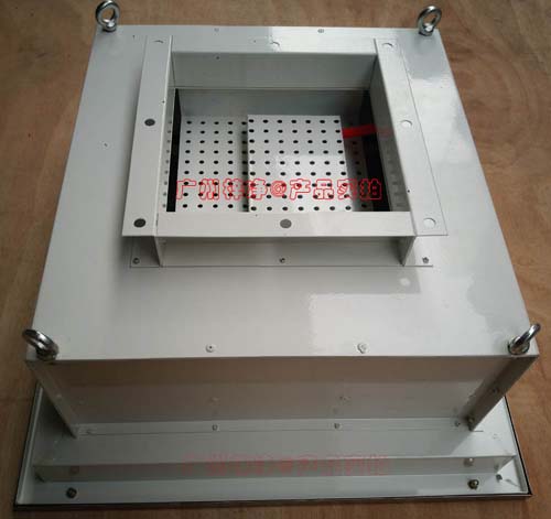 A、高效送风口静压箱体,材质有冷轧钢板(A3板)与不锈钢板。箱体是用作吊在天花上与四周库板相结合密封,也是高效送风口四件套主体。