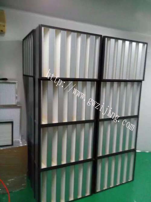 V型组合式高效过滤器,又称大风量过滤器,W型过滤器,V型过滤器,V型组合式高效过滤器外框材质分为塑胶框,镀锌框,铝框,不锈钢框,常用的以塑胶框为主。V型高效过滤器适用于研究和生产部门各种工艺要求在10万级洁净度一下使用,由于本过滤器具有良好的滤菌性能,故尤其适用于制药工业,生物实验室,医院手术室,食品工业,化妆品工业等。对于办公室和宾馆的空气净化亦有良好的效果。因此,对以上场合本过滤器可作为末级过滤器使用,可保证10万级以上的洁净度要求。