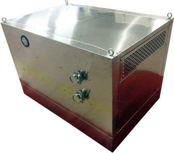 2、DOP发生器为产生烟雾的装置,DOP溶剂倒入发生器容器后,在一定压力或加热条件下产生气溶胶烟雾被送入高效过滤器上风侧(对DOP液体加热,形成DOP蒸汽,蒸汽在特定的条件下冷凝成微小液滴,去掉过大和过小的液滴,仅留下0.3μm左右的颗粒,雾状DOP进入风道);