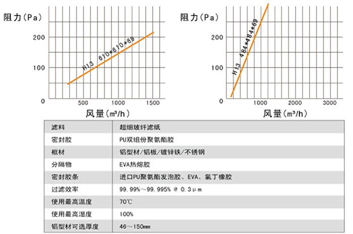 无隔板高效过滤器级别:H13-H14,滤芯材质:玻纤;